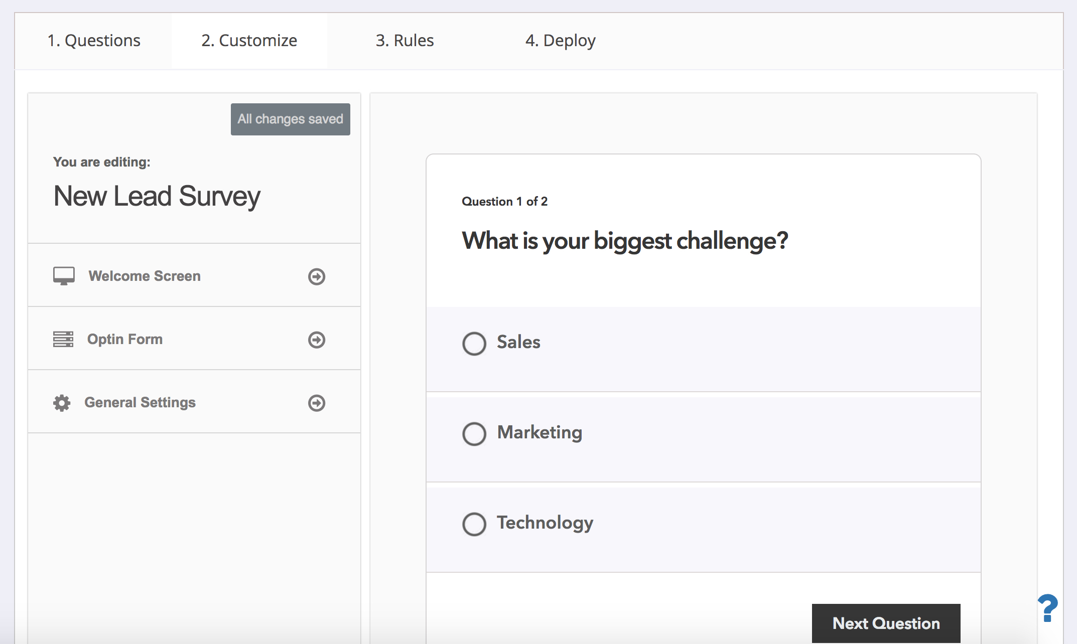 The New Lead Survey is an upgrade to the traditional opt-in form. For each new lead you'll also identify their biggest challenge.