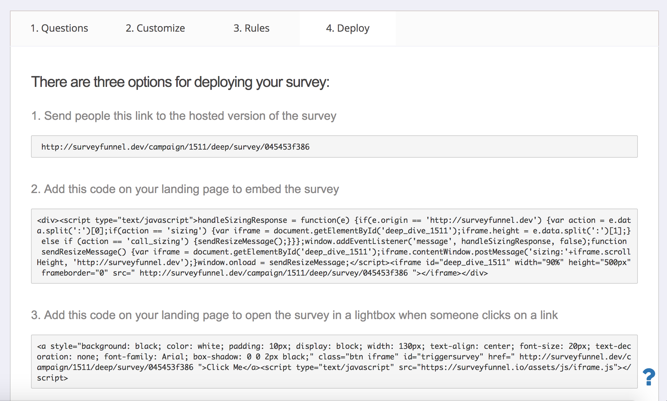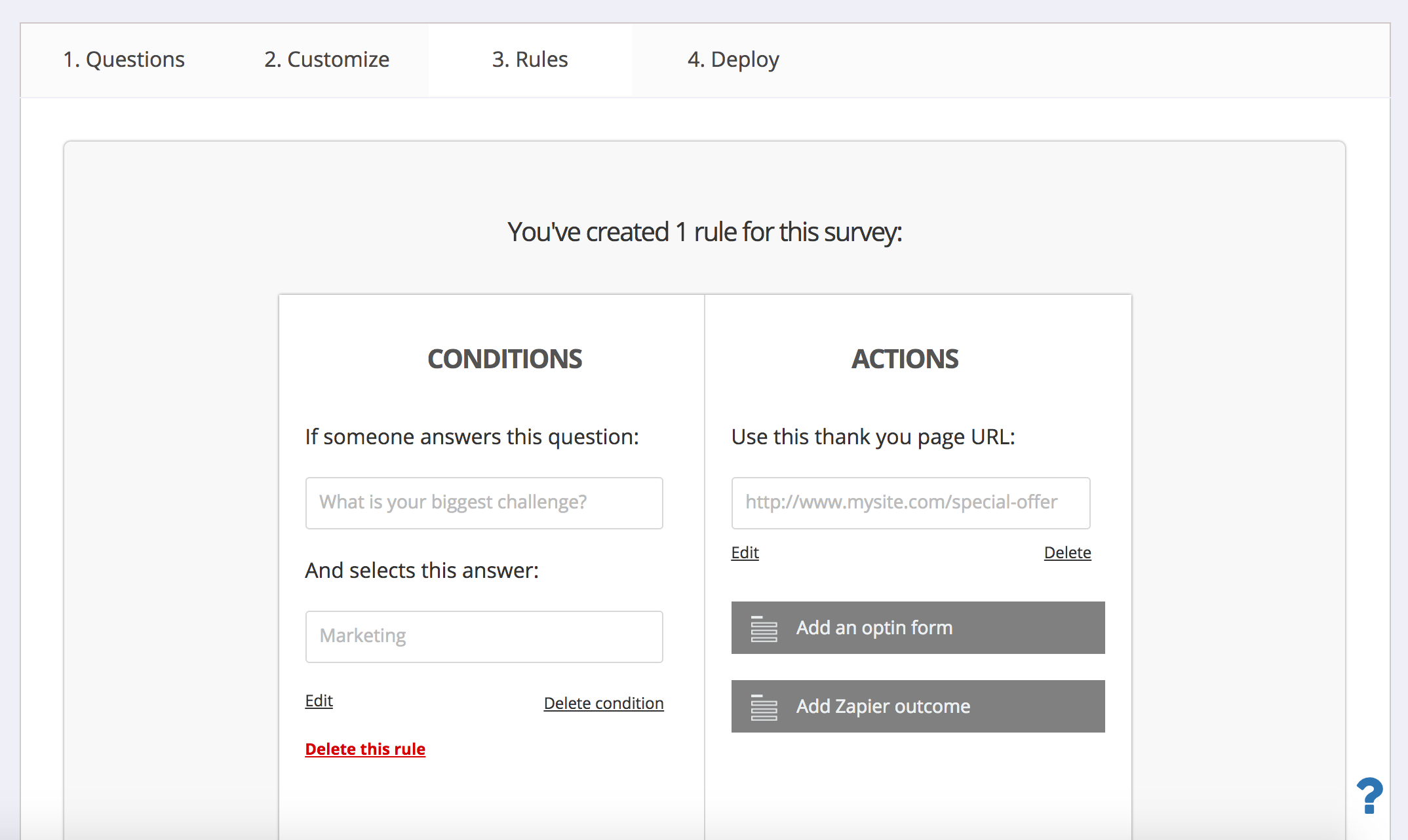 Explore ScoringRules is one of the most powerful features in the new Survey Funnel. You can use Rules to build a series of “if-then” statements that control what happens after the survey is submitted.