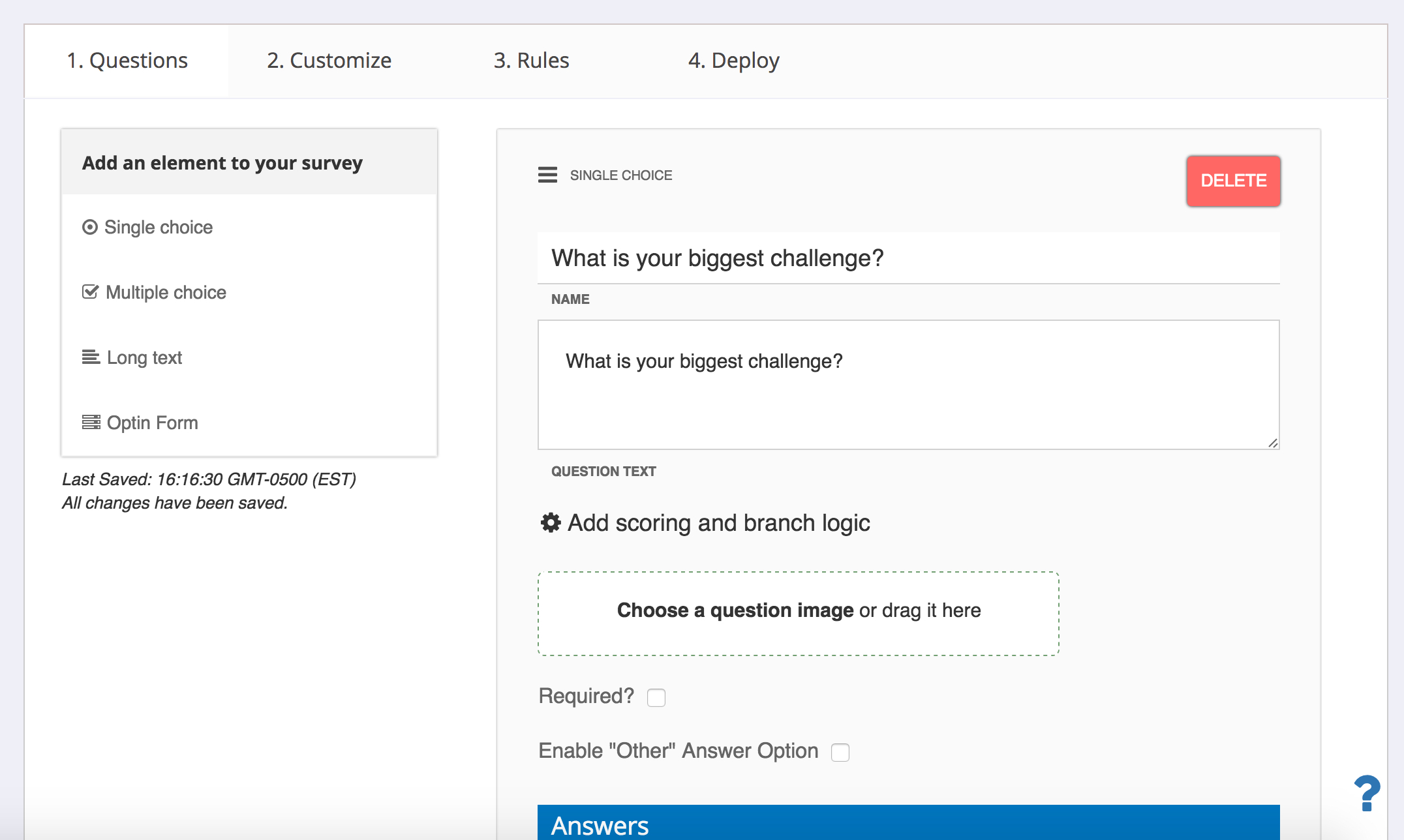 Branch Logic gives you the ability to say “If someone answers ‘Yes’ to Question A, show them Question B next”, but if they answer “No” to Question A, show them Question C next.”