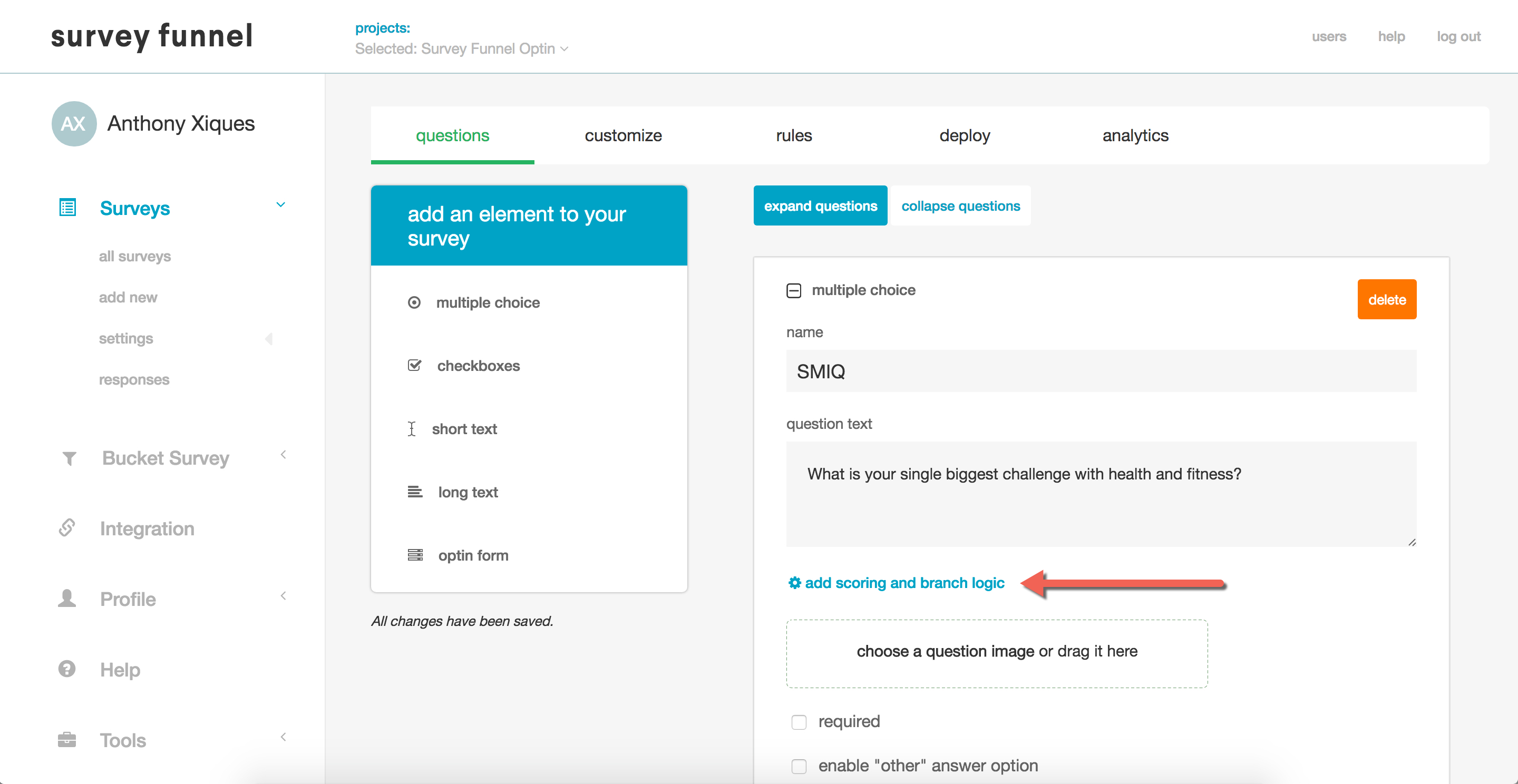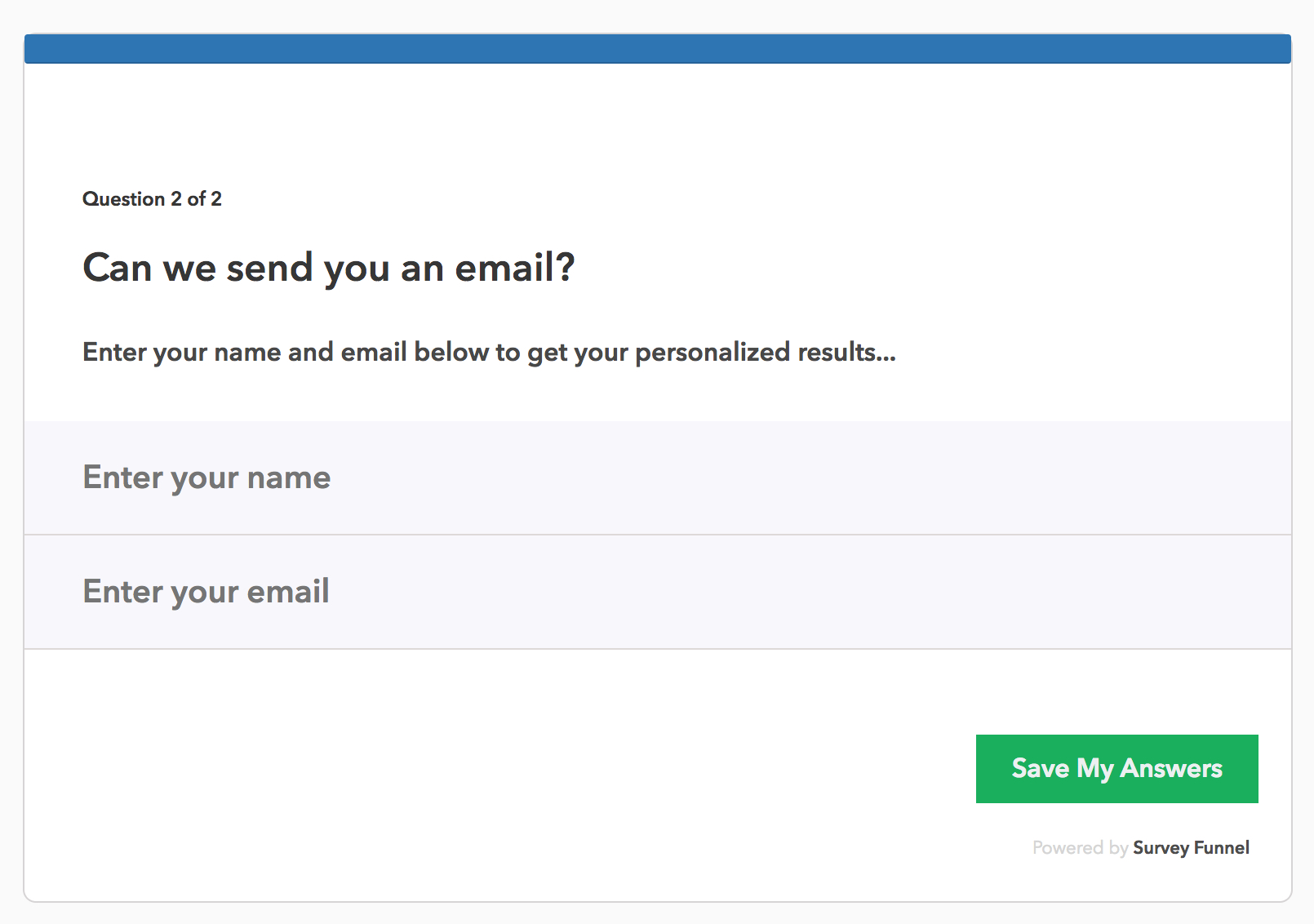 You can also use Zapier to integrate Survey Funnel with your email provider, and that allows you to pass name, email, total score, and all answer data to custom fields in your email provider or CRM.